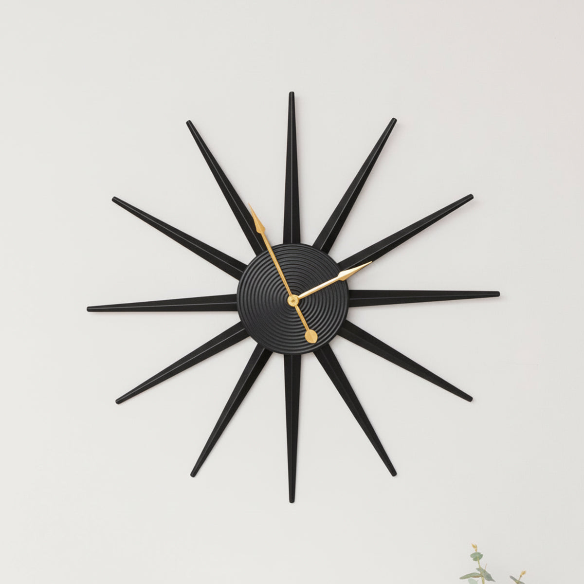 Black Metal Starburst Detail Wall Clock - 60cm x 60cm