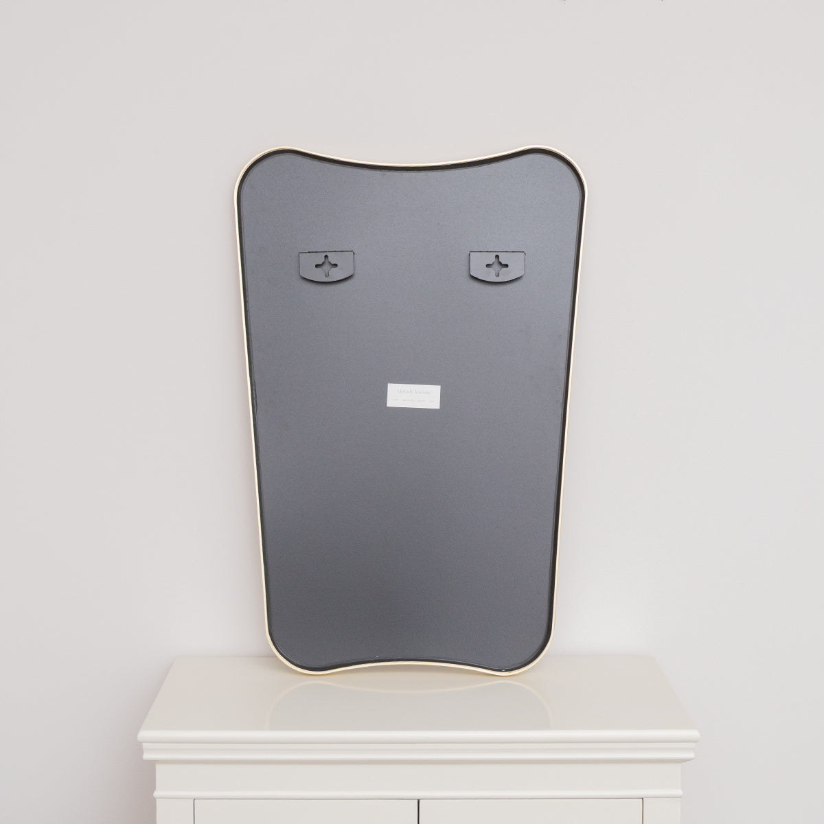 An ideal wall mirror for placement above a console table, vanity, or mantlepiece. Due to its unique design, this mirror would look great placed in a mid century modern, minimalist or Scandinavian style interior space.