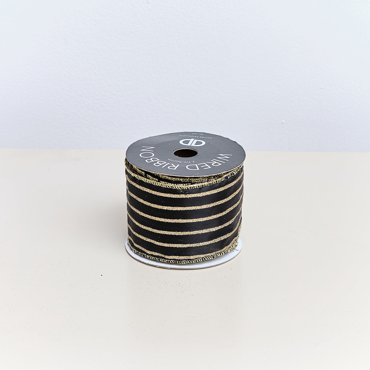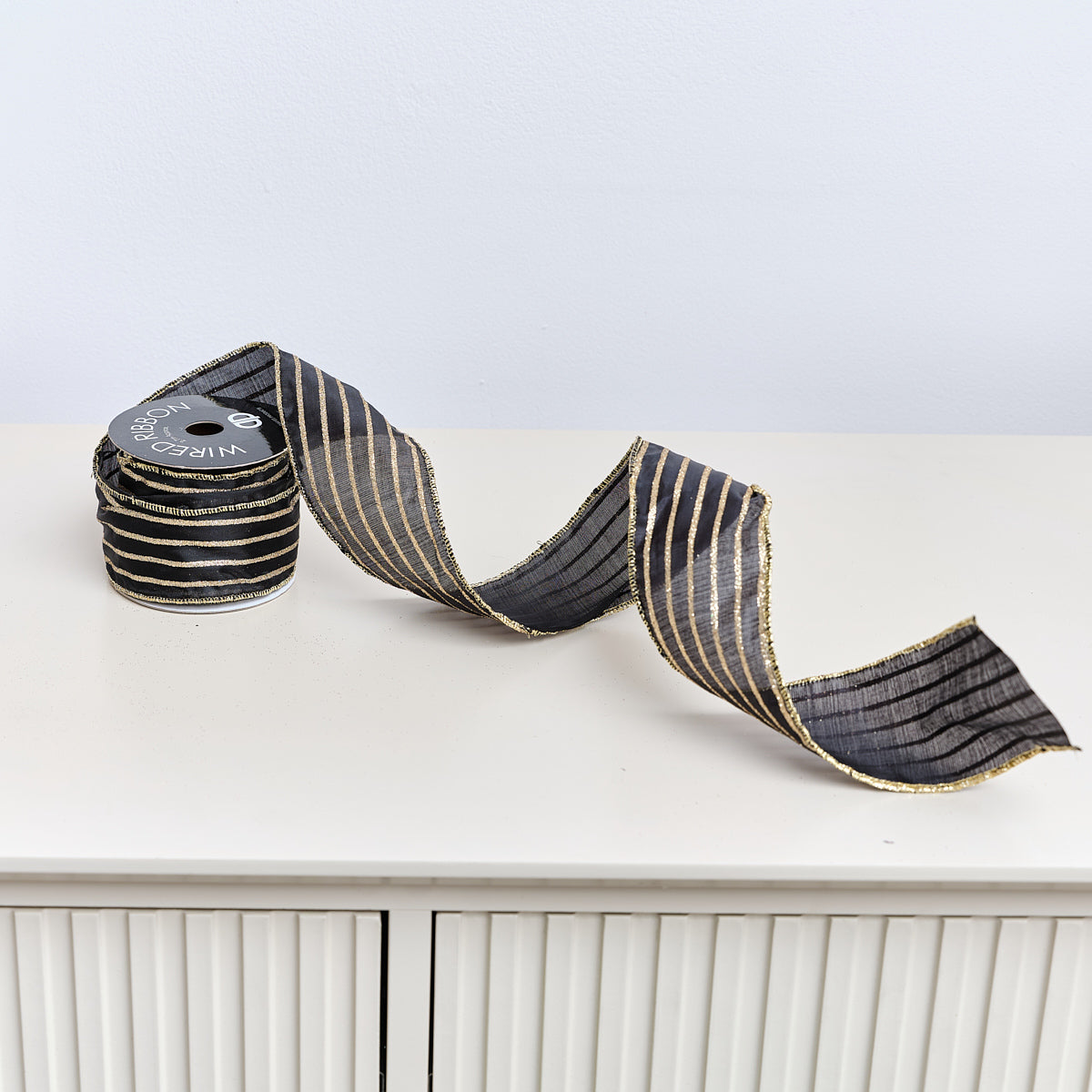 Large Black & Gold Striped Ribbon Christmas Garland - 270cm