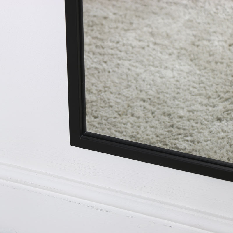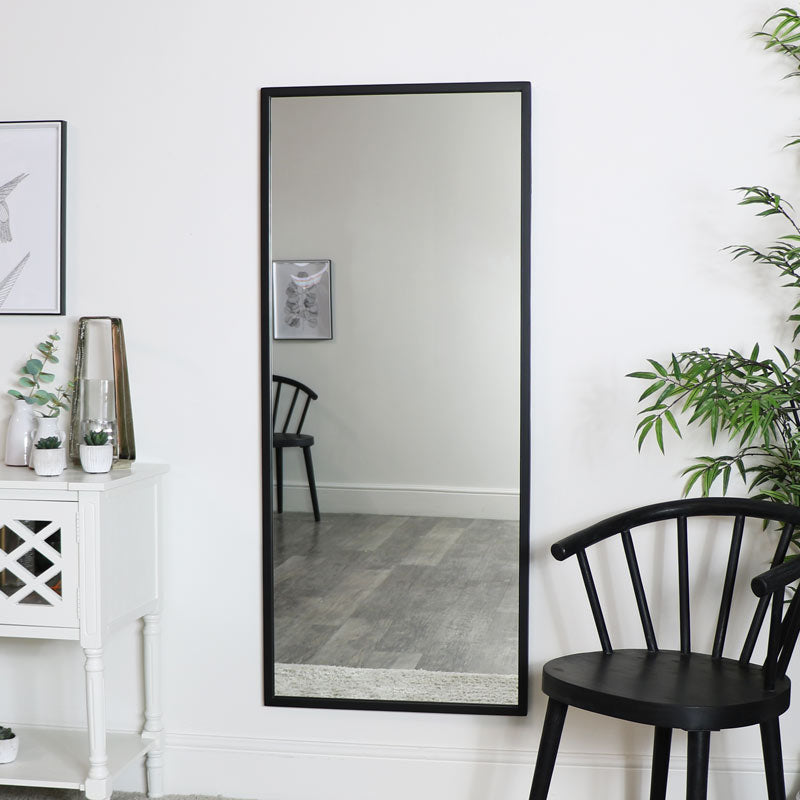 This mirror is ideal for placing in a bedroom, hallway, living room or bathroom. Full length design with a black metal frame and rectangular shape mirror.