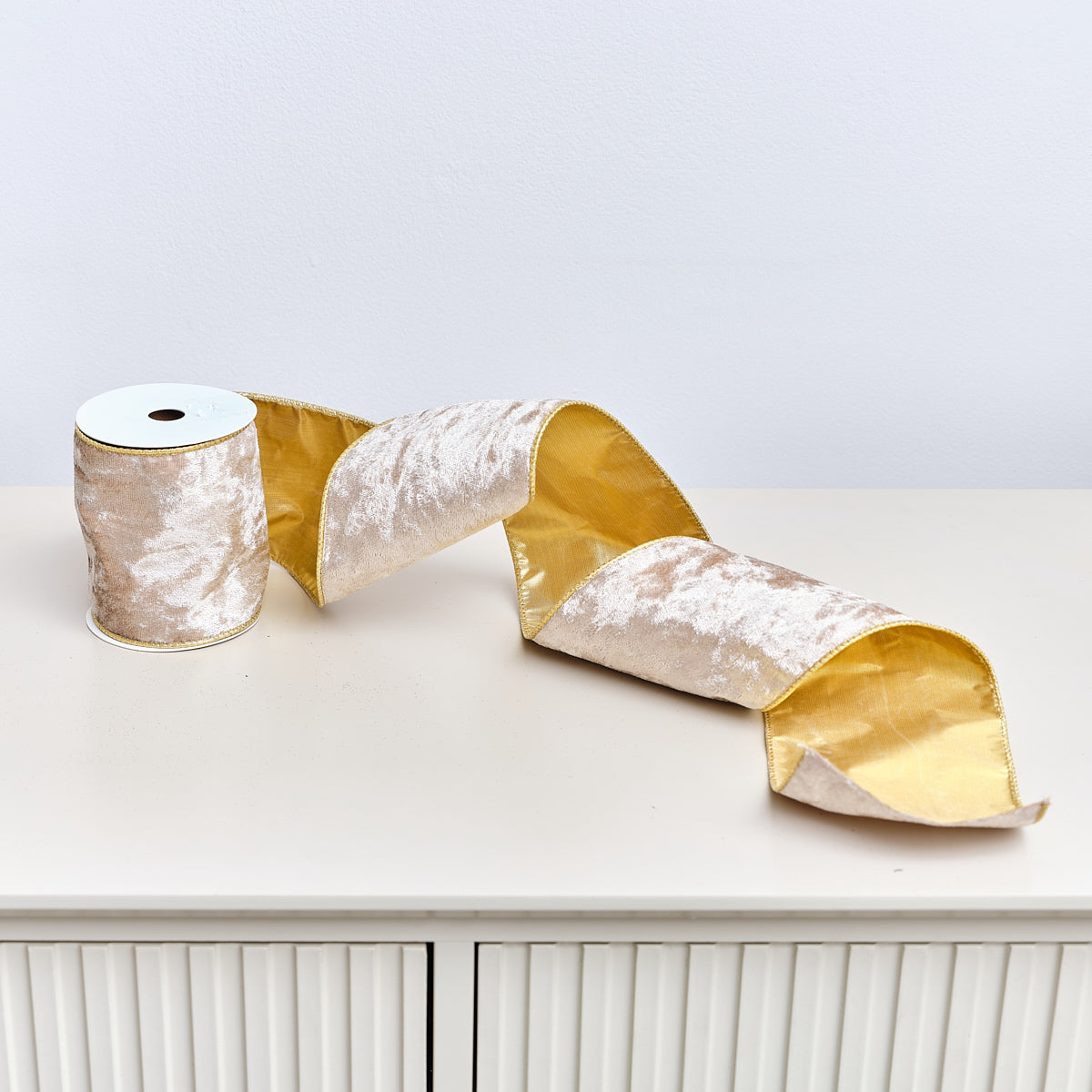 This Large Shiny Velvet Pink & Gold Wired Ribbon Garland - 270cm is a lovely Christmas decoration, perfect for fans of traditional festive decor and pink accessories. Made of ribbon, this has a shiny design and a light pink and gold coloured finish.