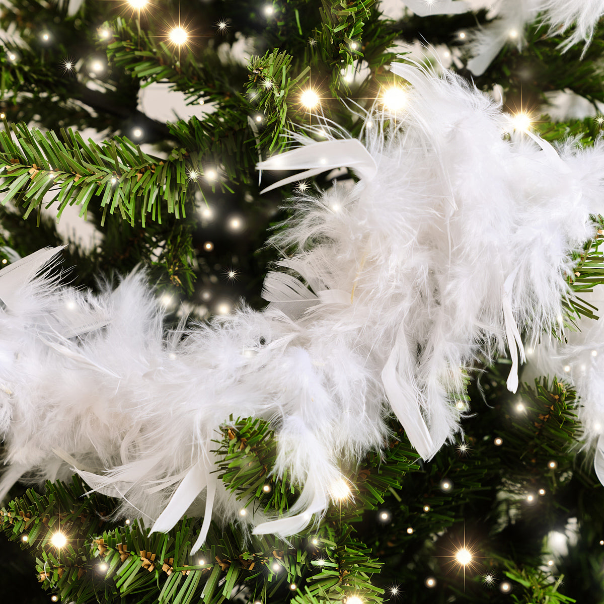 This Large White Feather Boa Christmas Garland - 182cm is a pretty, quirky style festive decoration, perfect for fans of neutral and seasonal garlands. Made of feathers, this garland has a realistic feathered design with a clean and neutral colour.