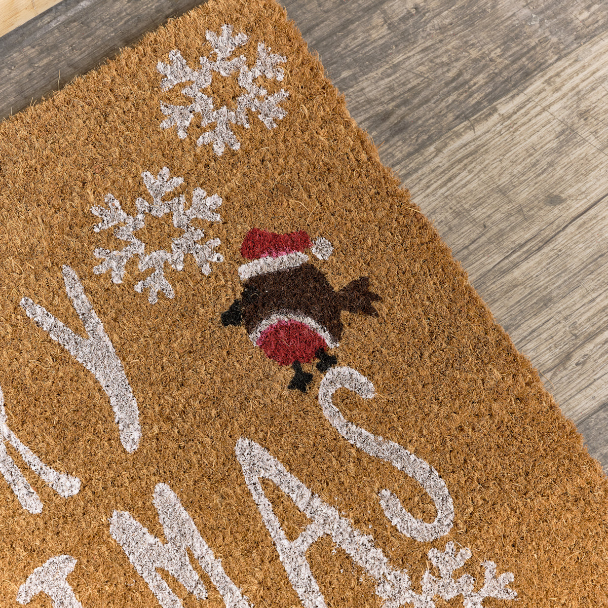 This Merry Christmas Robin Detail PVC Backed Coir Doormat 60cm x 40cm is a great way to dress up the entrance to your home and welcome family and friends to your home during the festive season.