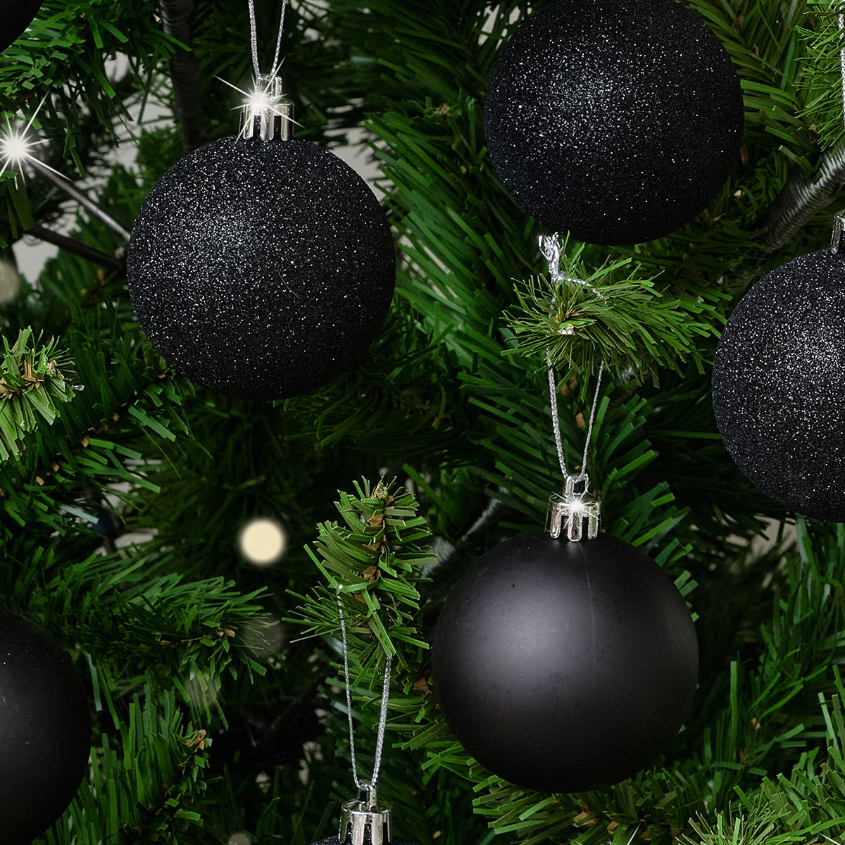 Set of 10 Mixed Glitter Black Baubles - 6cm
