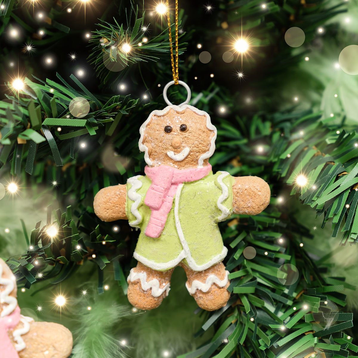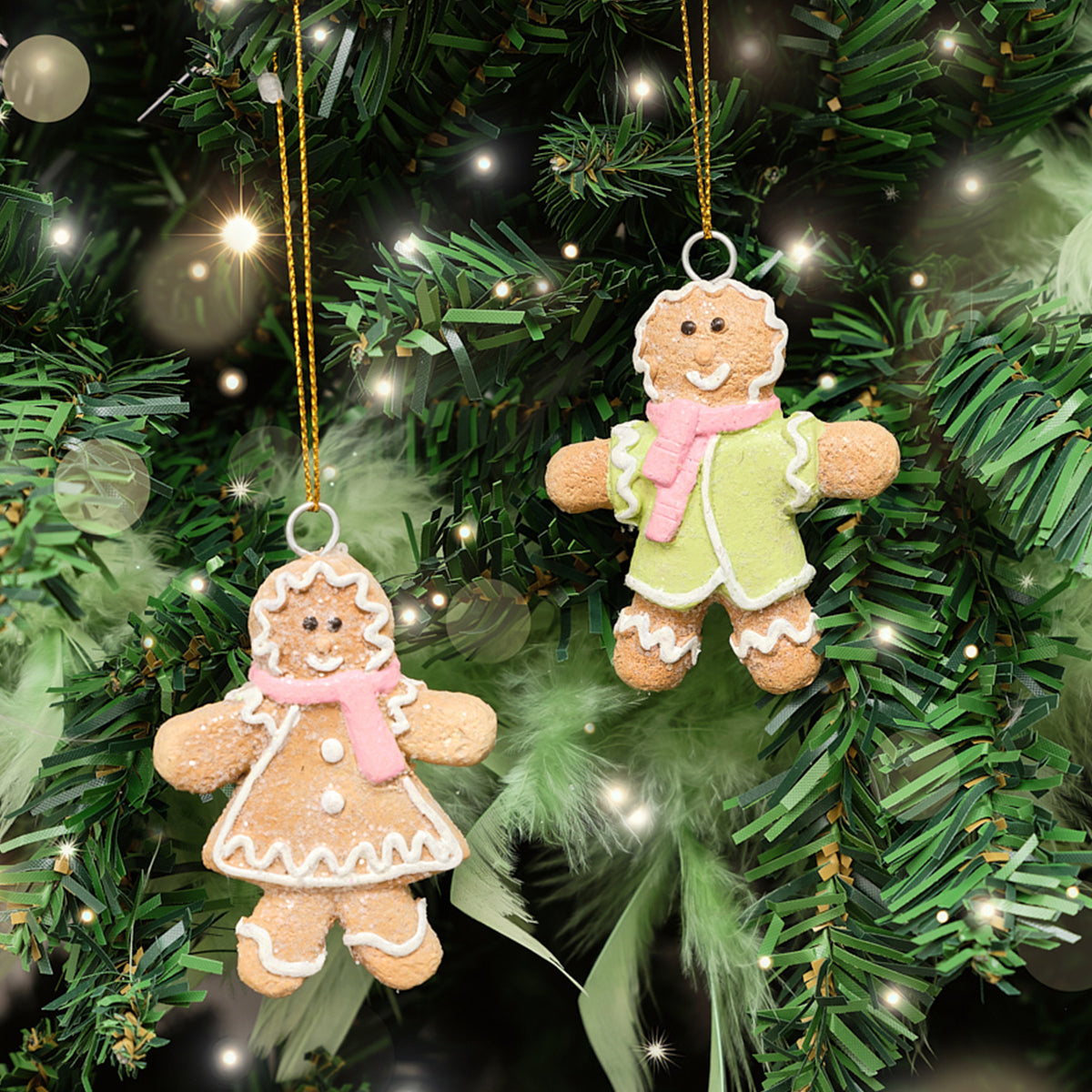 This Set of 2 Gingerbread People Bauble Decorations - 7cm are a cute, unique set of decorations, prefect for fans of neutral, pink and green decor and multicoloured detailing. Made of plastic, each bauble has a round shape and comes with a traditional Gingerbead man textured design.