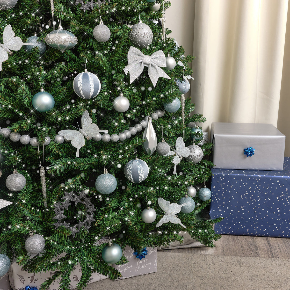 This Set Of 8 Mixed Silver Glitter Baubles are a beautiful, vintage inspired set of hanging baubles, perfect for lovers of glittery finishes and silver home accessories. Made of resin and glitter, these baubles are available as a set of three and come with a round shape and an ornate matte design. Each baubles is completed with a silver glitter and matte finish.